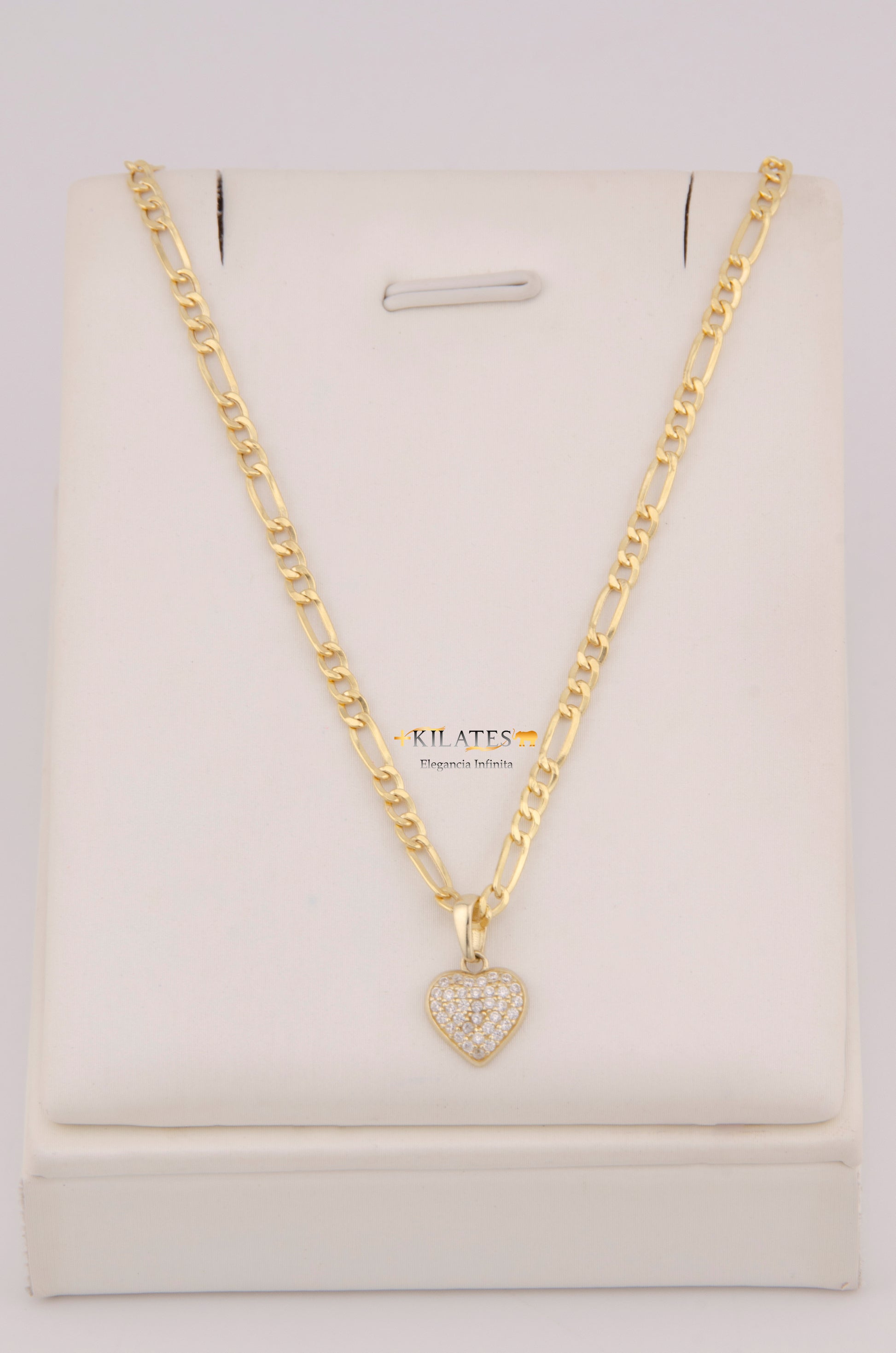 "CADENA DE 50CM PARA DAMA ESTILO 3+1 CON DIJE DE CORAZON CON ZIRCONIA BLANCA. ORO 10K #775-3904"