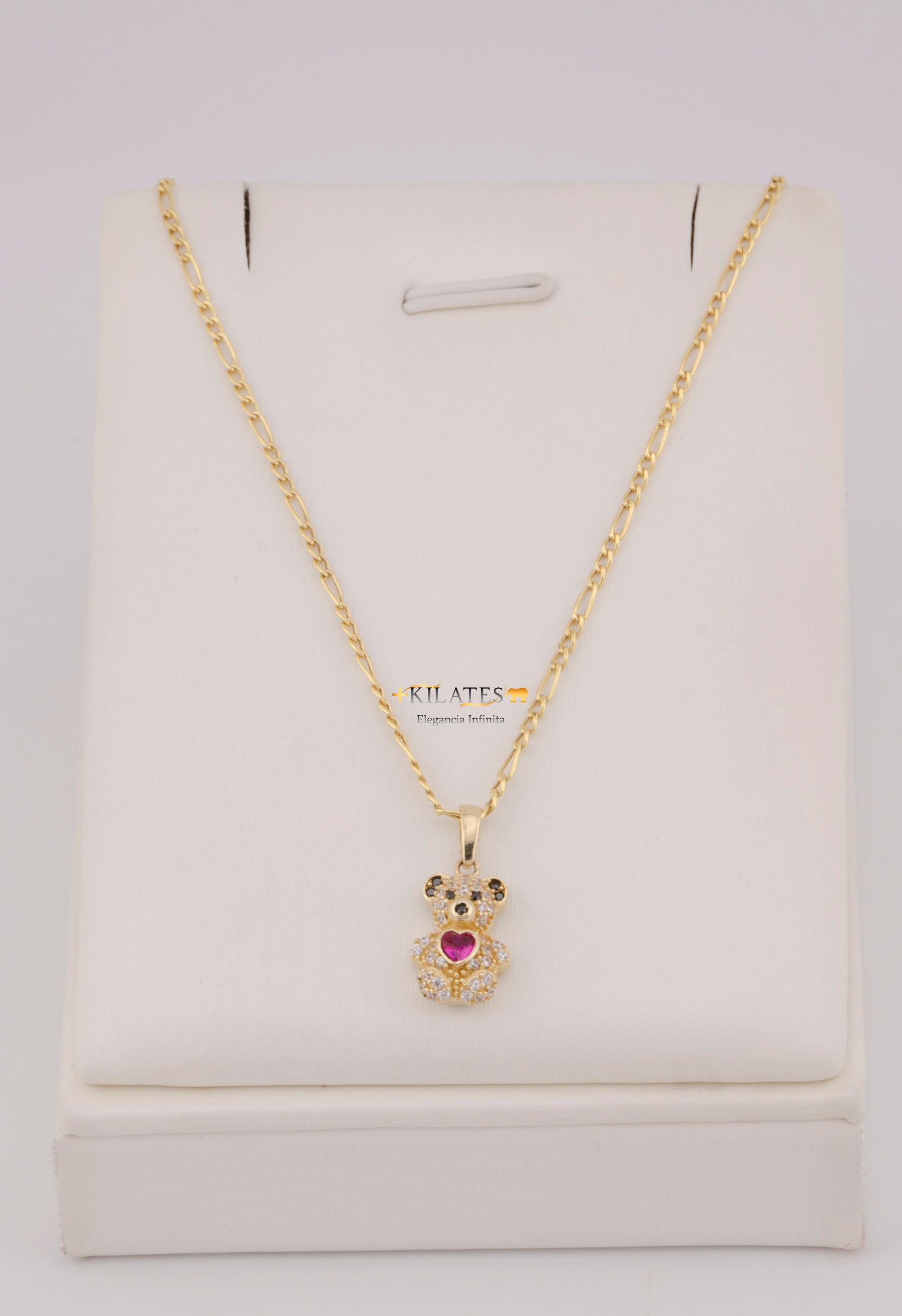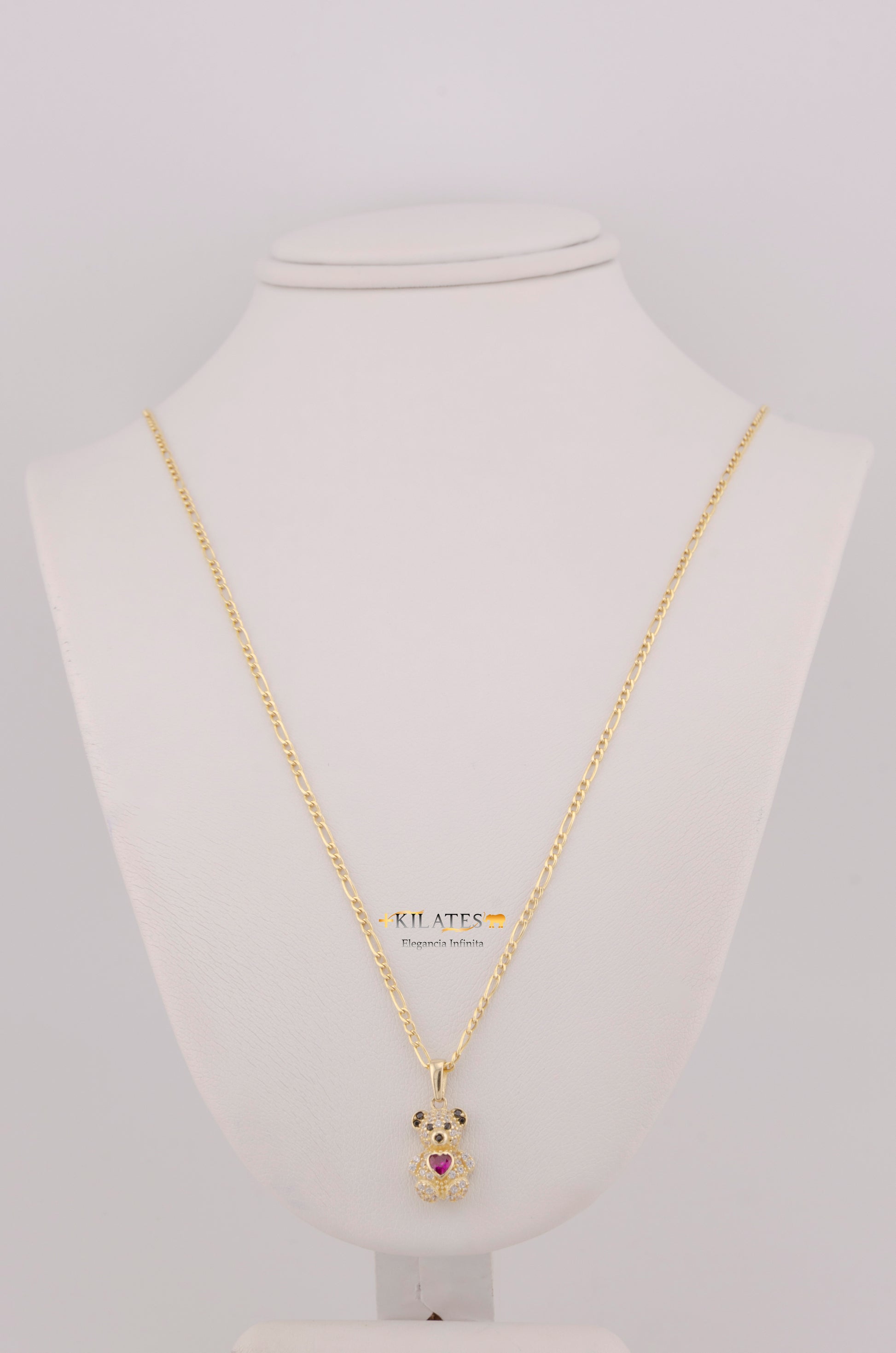 "CADENA DE 50CM PARA DAMA ESTILO 3+1 CON DIJE DE OSO PEQUEÑO. ORO 10K #775-3824"