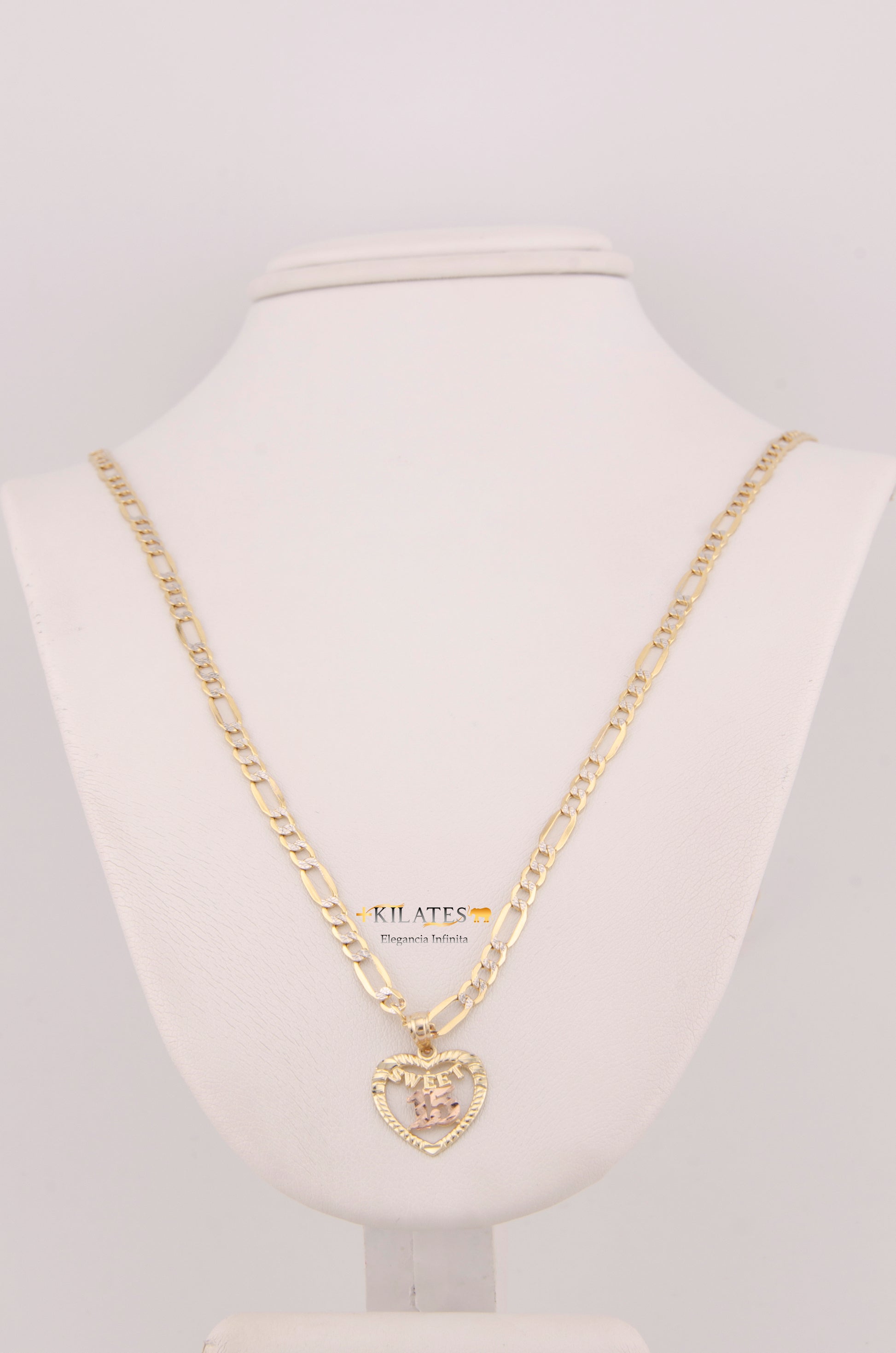 "CADENA DE 50CM PARA DAMA ESTILO 3+1 DIAMANTADA CON DIJE DE 15 AÑOS. ORO 10K #775-3894"