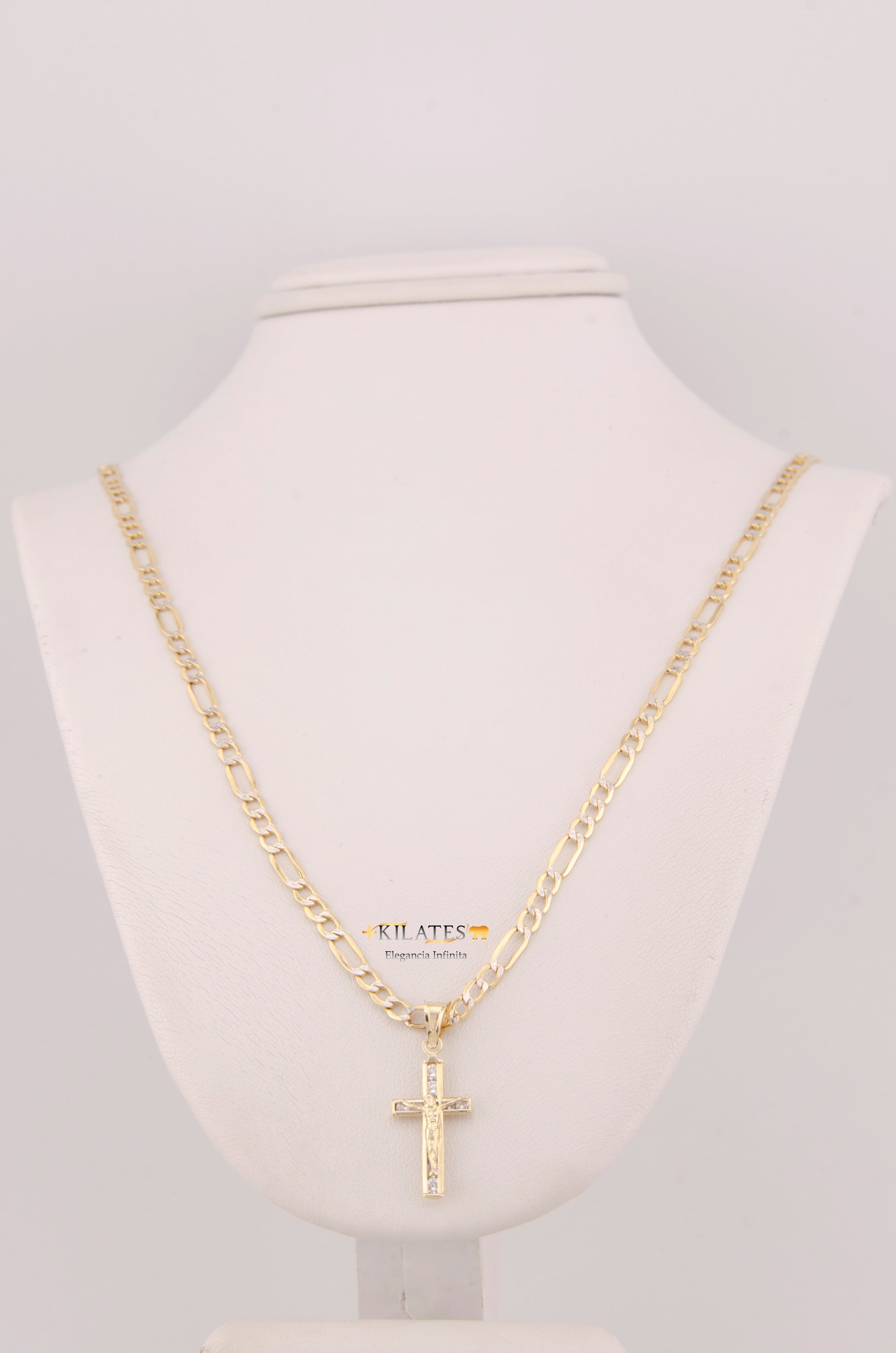 "CADENA DE 50CM PARA DAMA ESTILO 3+1 DIAMANTADA CON DIJE DE CRUZ CON JESUCRISTO. ORO 10K #775-3897"