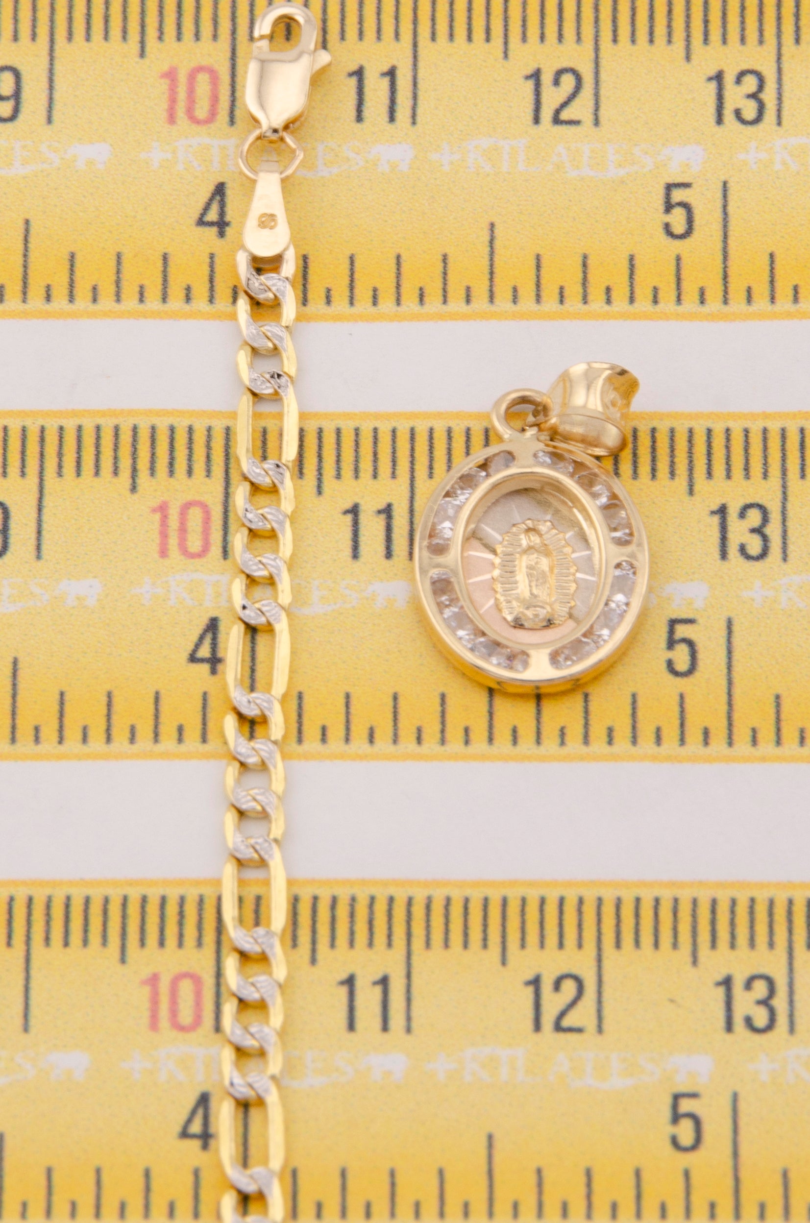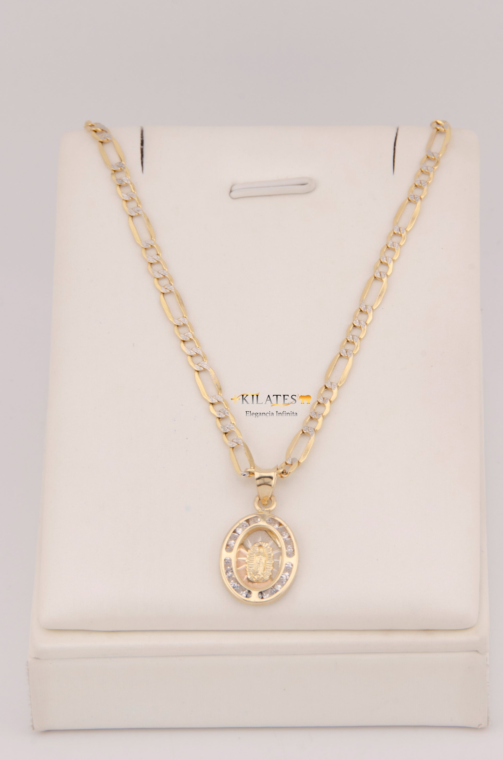 "CADENA DE 50CM PARA DAMA ESTILO 3+1 DIAMANTADA CON DIJE OVALADO DE LA VIRGEN JESUCRISTO. ORO 10K #775-3898"