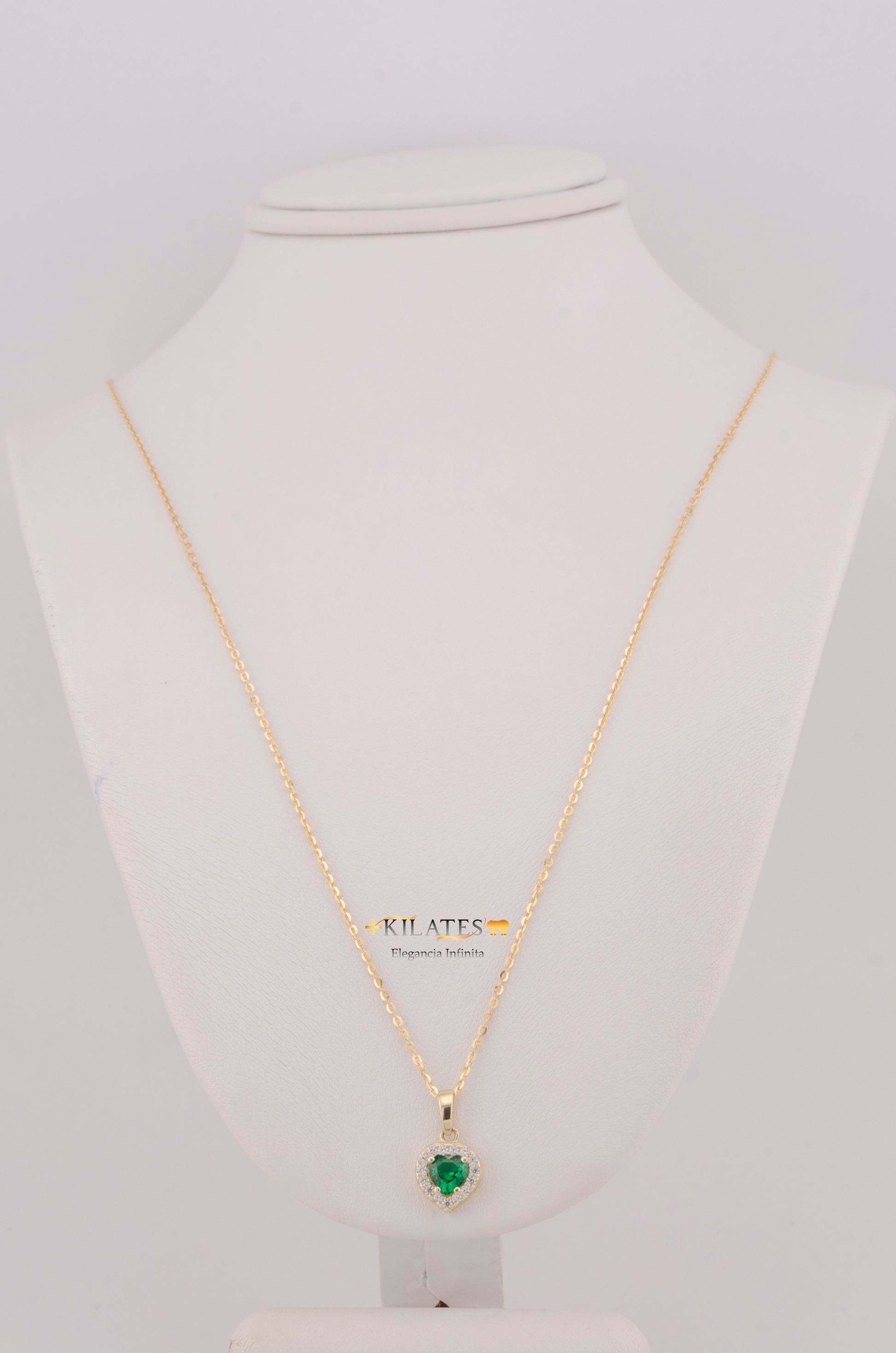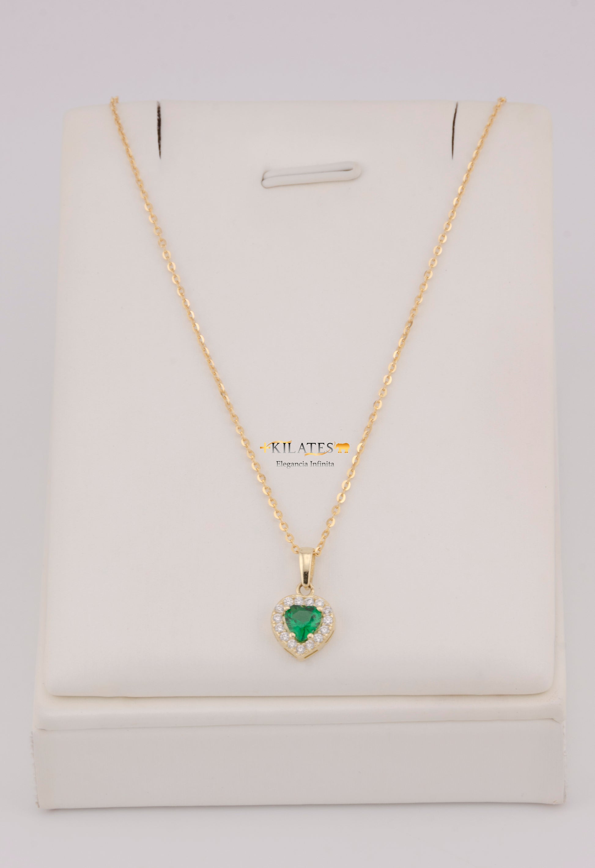 "CADENA DE 50CM PARA DAMA ESTILO CUADRADA SOLIDA CON DIJE DE CORAZON BLANCO CON VERDE. ORO 10K #775-3826"