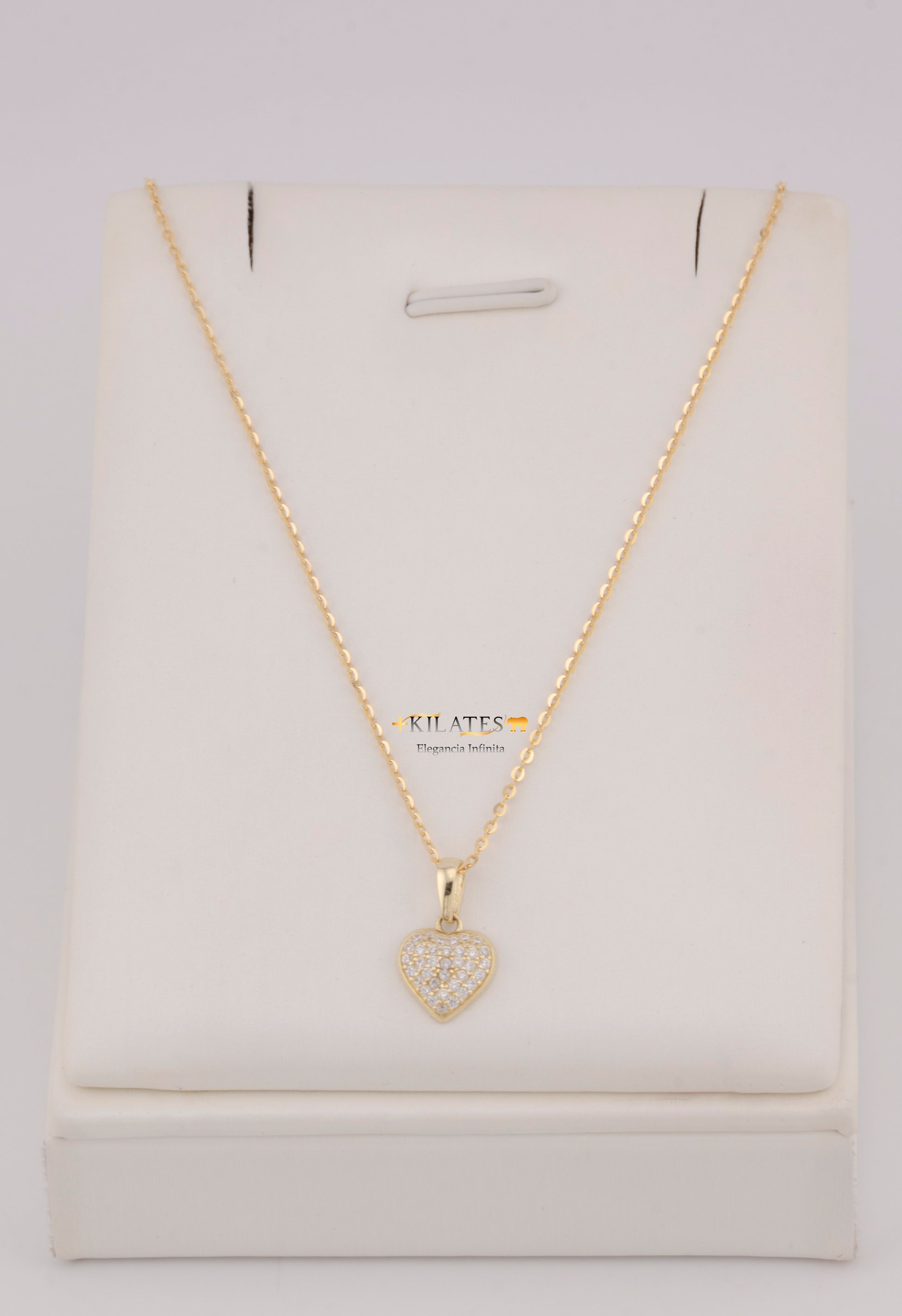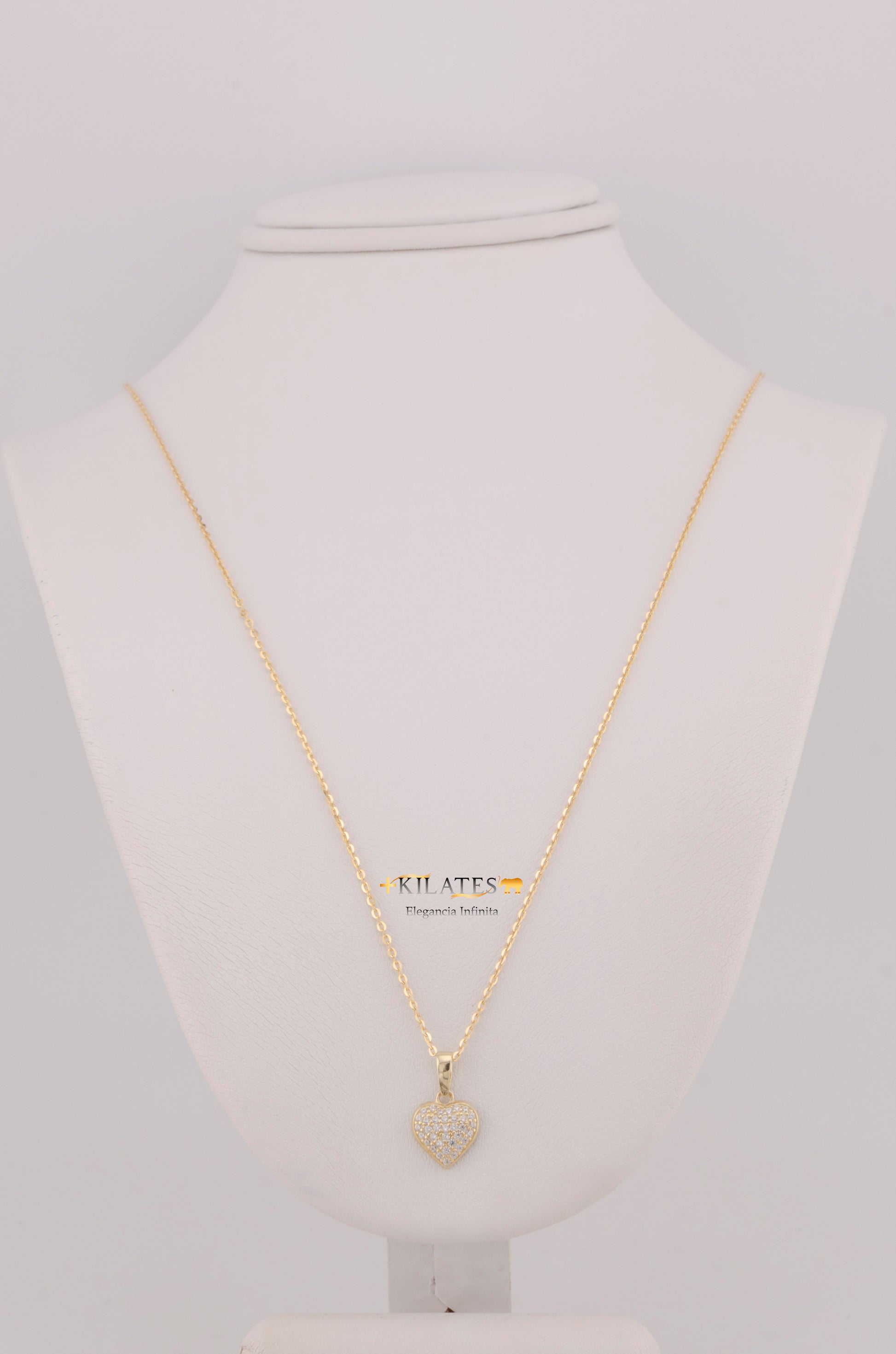 "CADENA DE 50CM PARA DAMA ESTILO CUADRADA SOLIDA CON DIJE DE CORAZON CON ZIRCONIA BLANCA. ORO 10K #775-3836"