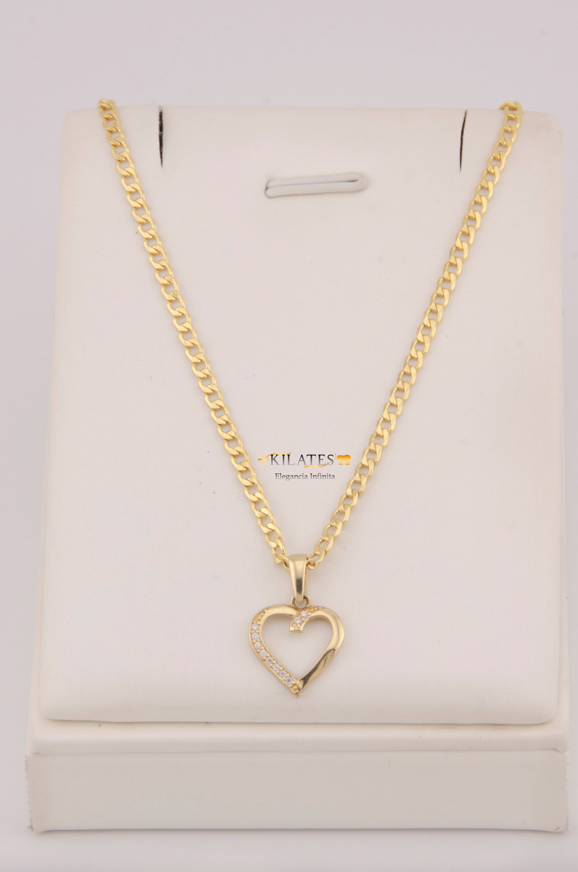 "CADENA DE 50CM PARA DAMA ESTILO CUBANA CON DIJE DE CORAZON CON ZIRCONIA BLANCA. ORO 10K #775-3914"