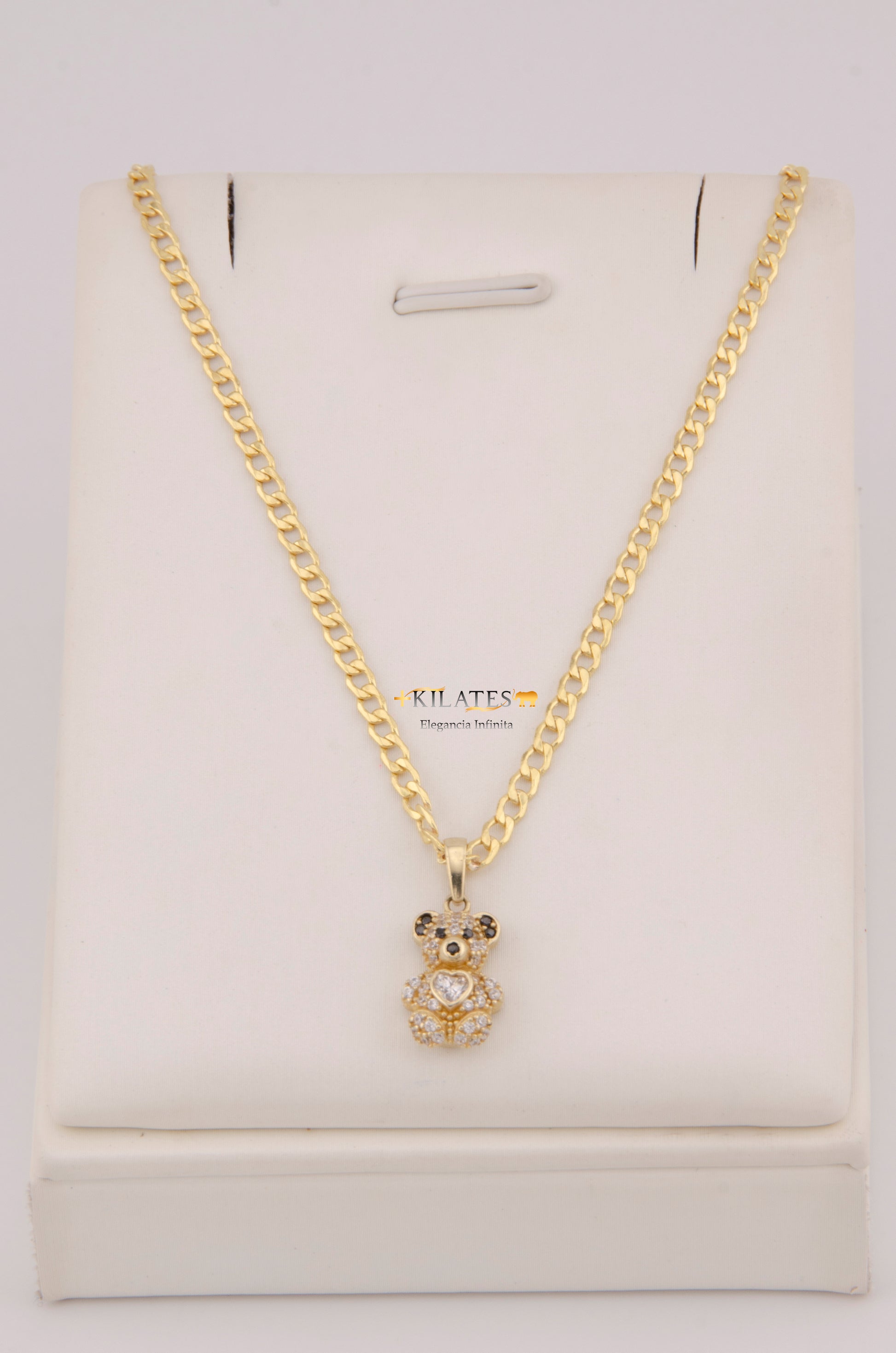 "CADENA DE 50CM PARA DAMA ESTILO CUBANA CON DIJE DE OSO PEQUEÑO. ORO 10K #775-3911"