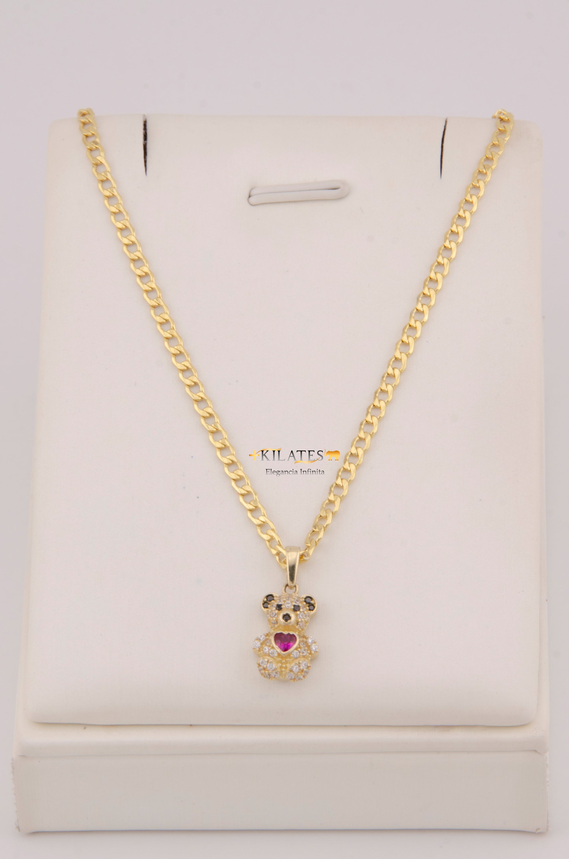 "CADENA DE 50CM PARA DAMA ESTILO CUBANA CON DIJE DE OSO PEQUEÑO. ORO 10K #775-3912"