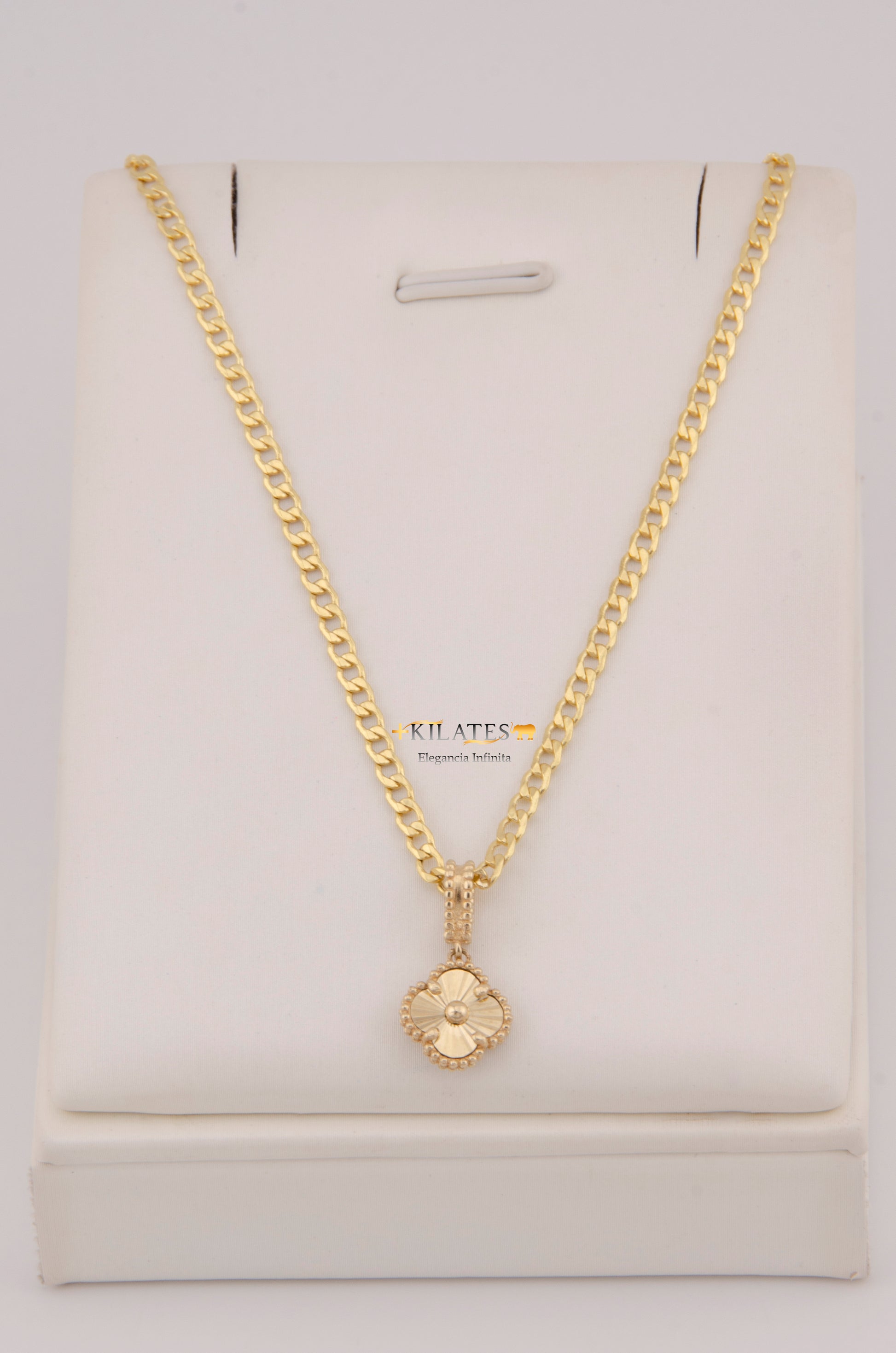 "CADENA DE 50CM PARA DAMA ESTILO CUBANA CON DIJE DE TREBOL DORADO. ORO 10K #775-3921"
