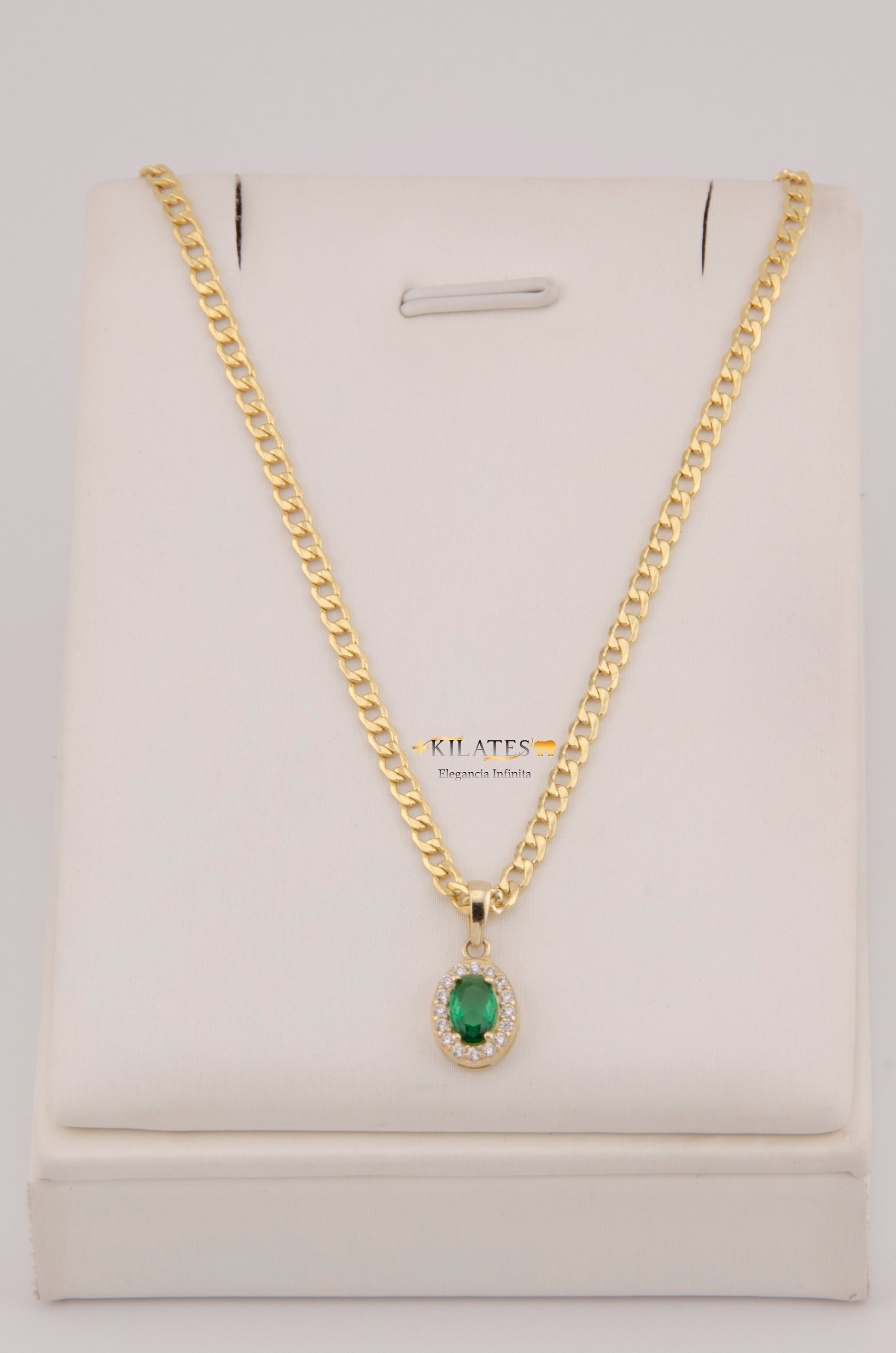 "CADENA DE 50CM PARA DAMA ESTILO CUBANA CON DIJE OVALADO BLANCO CON VERDE. ORO 10K #775-3923"