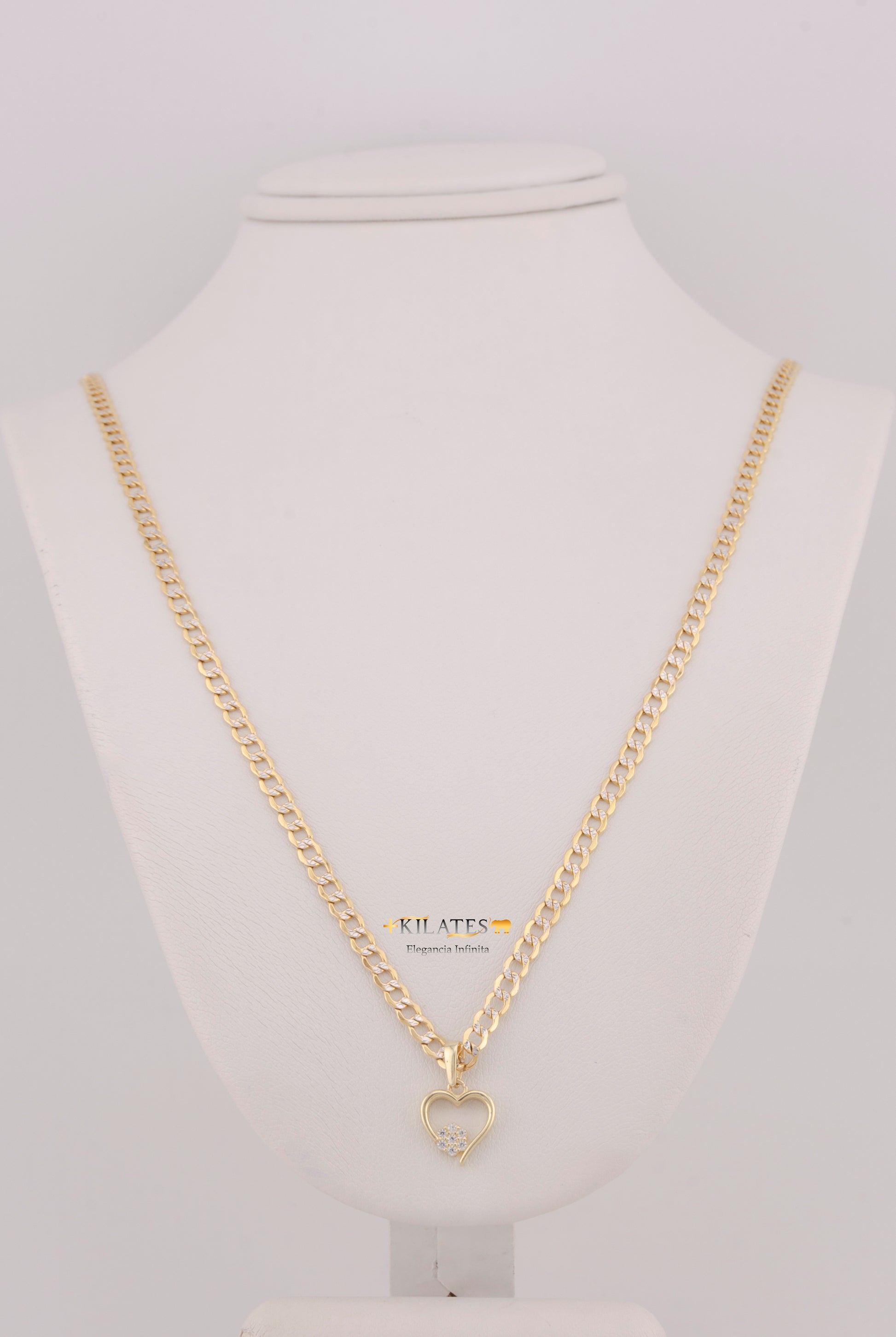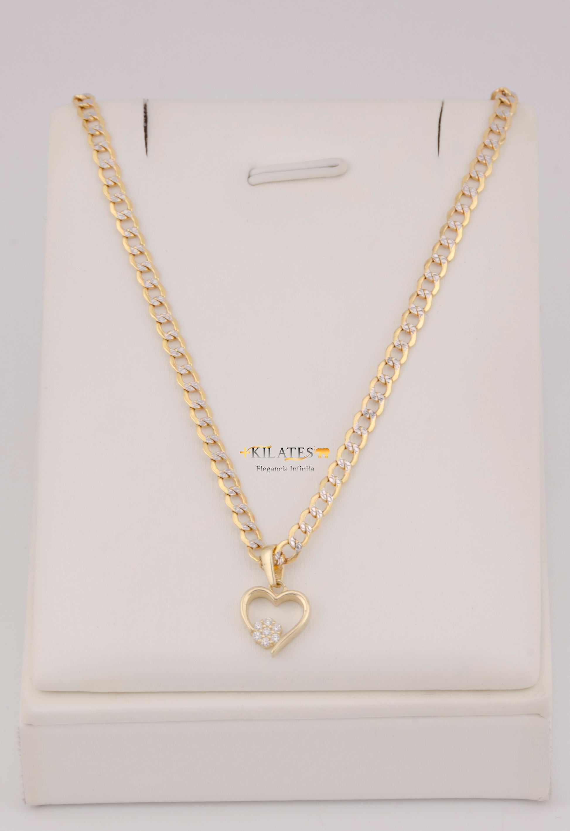 "CADENA DE 50CM PARA DAMA ESTILO CUBANA DIAMANTADA CON DIJE DE CORAZON CON ZIRCONIA BLANCA. ORO 10K #775-3835"