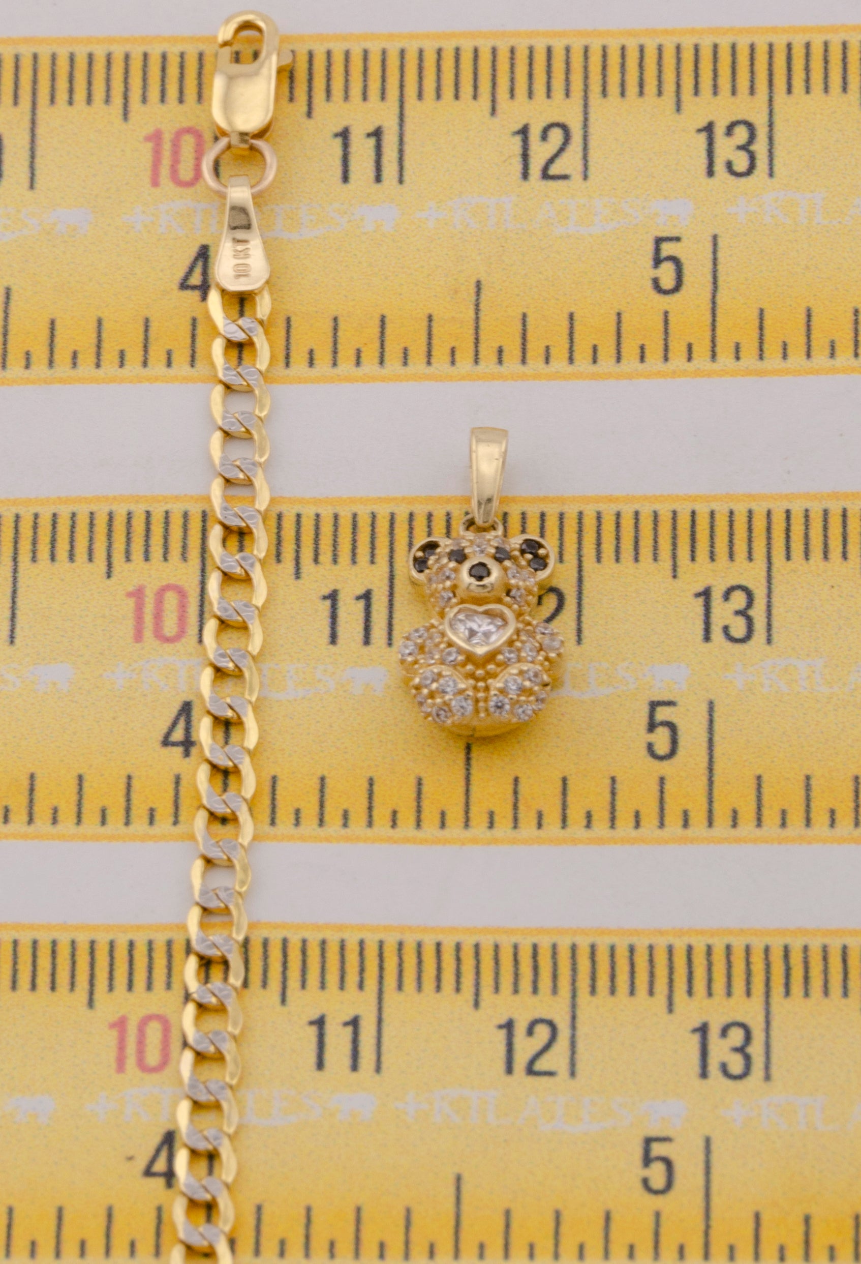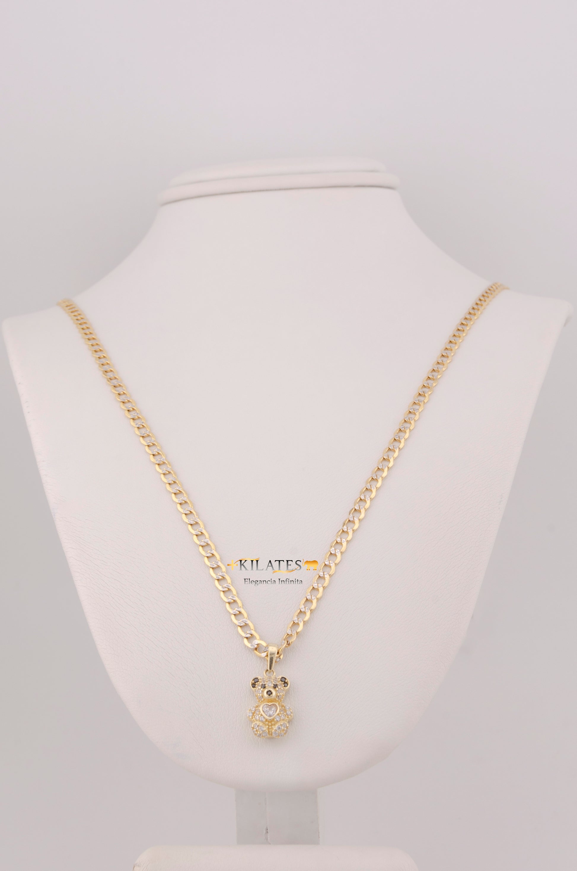 "CADENA DE 50CM PARA DAMA ESTILO CUBANA DIAMANTADA CON DIJE DE OSO PEQUEÑO. ORO 10K #775-3820"