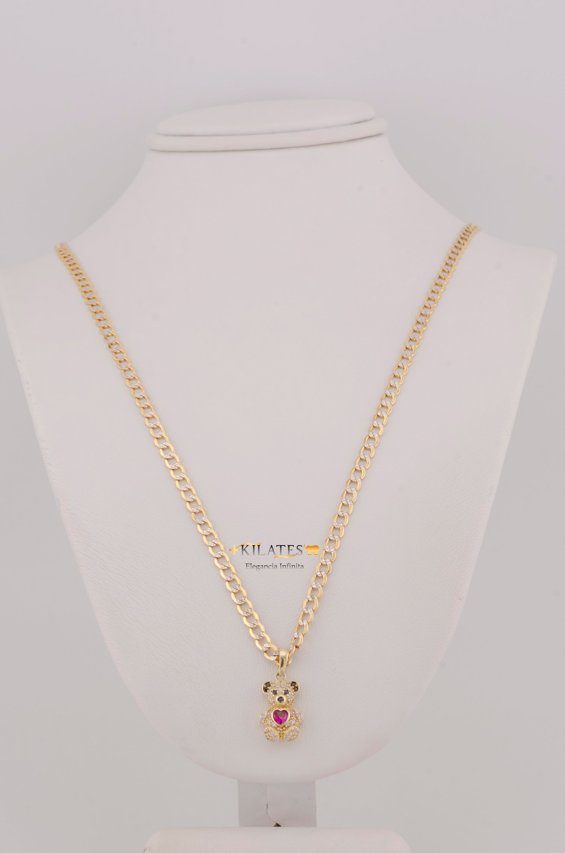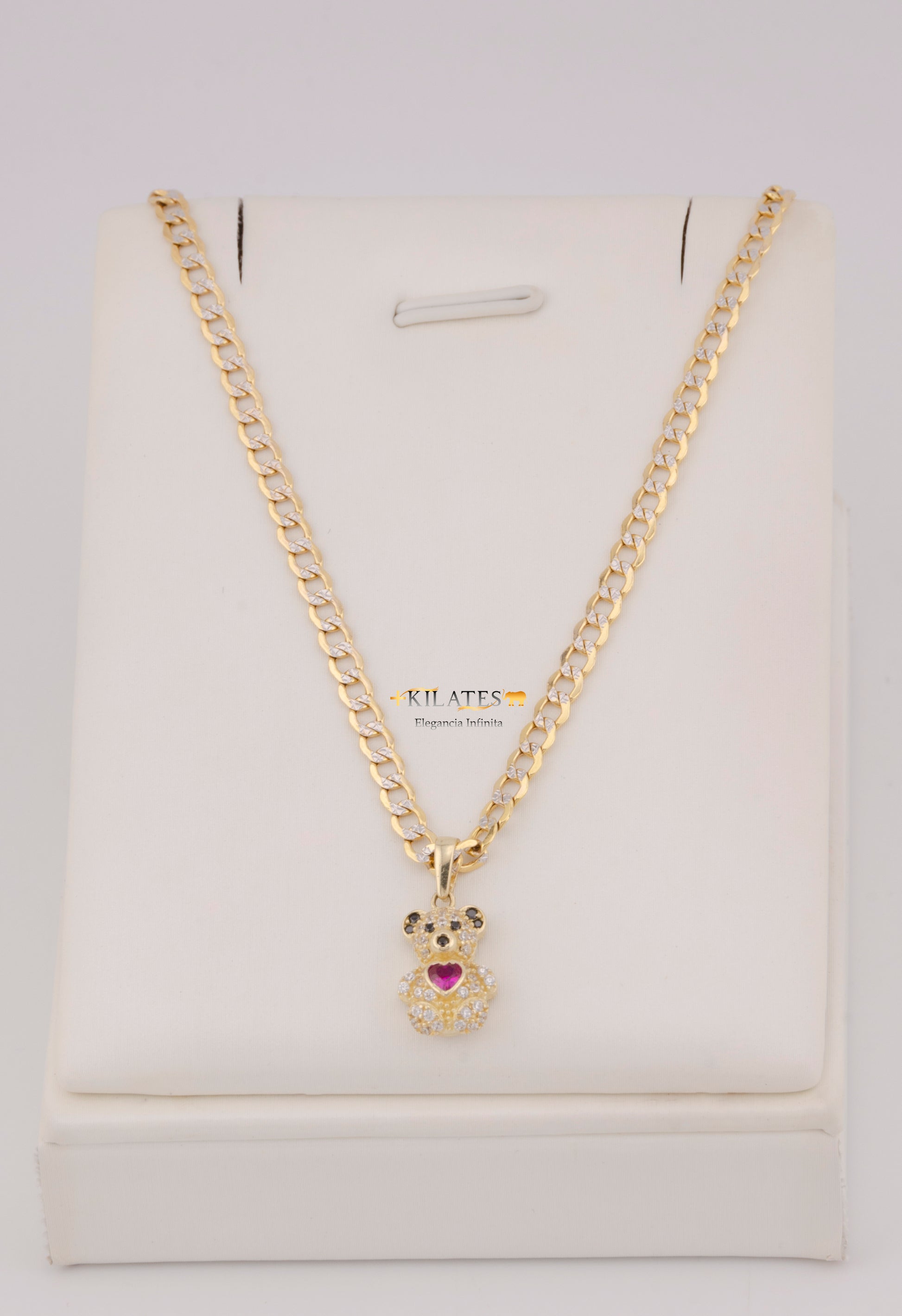 "CADENA DE 50CM PARA DAMA ESTILO CUBANA DIAMANTADA CON DIJE DE OSO PEQUEÑO. ORO 10K #775-3825"