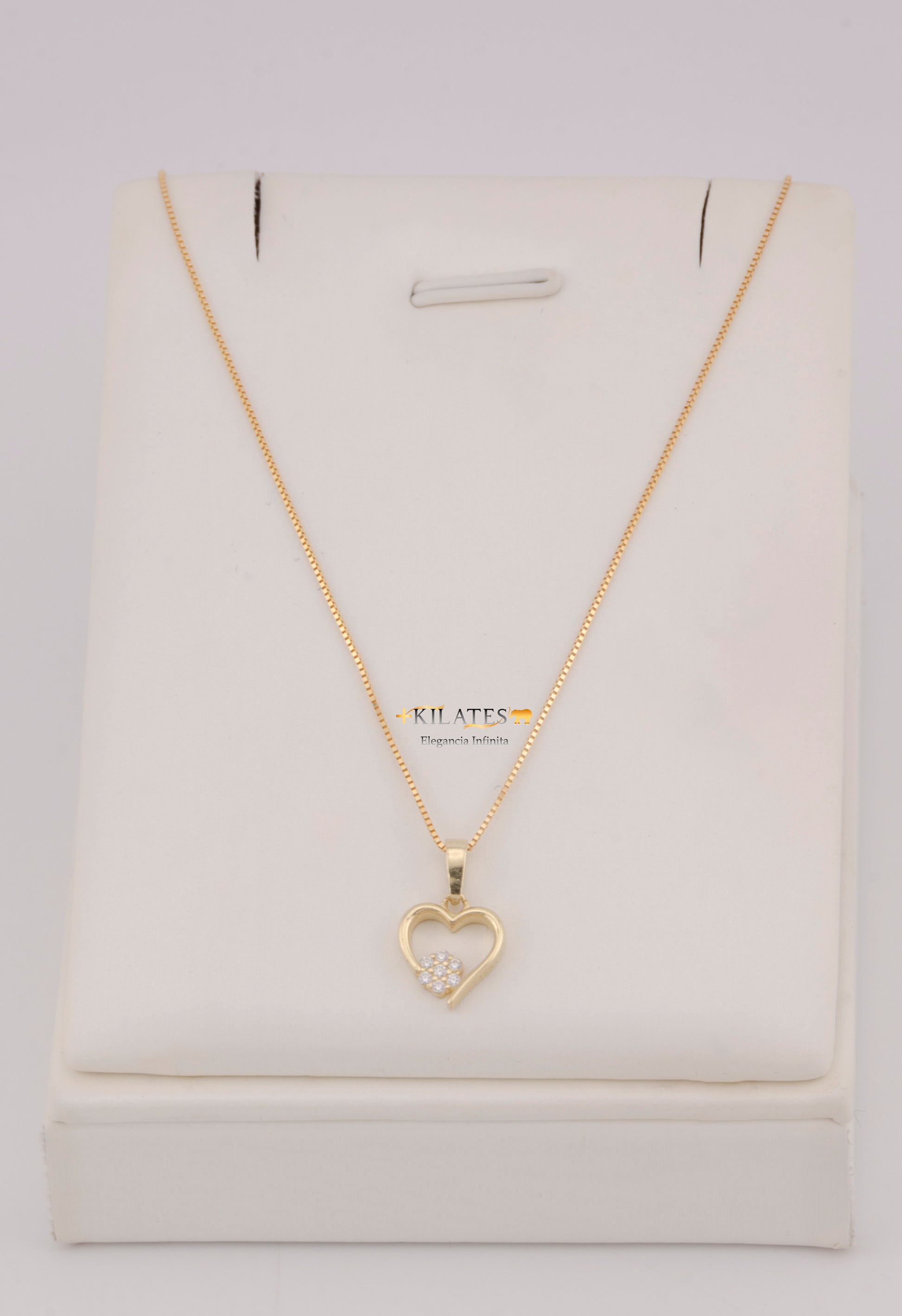 "CADENA DE 50CM PARA DAMA ESTILO FINITA CON DIJE DE CORAZON CON ZIRCONIA BLANCA. ORO 10K #775-3832"