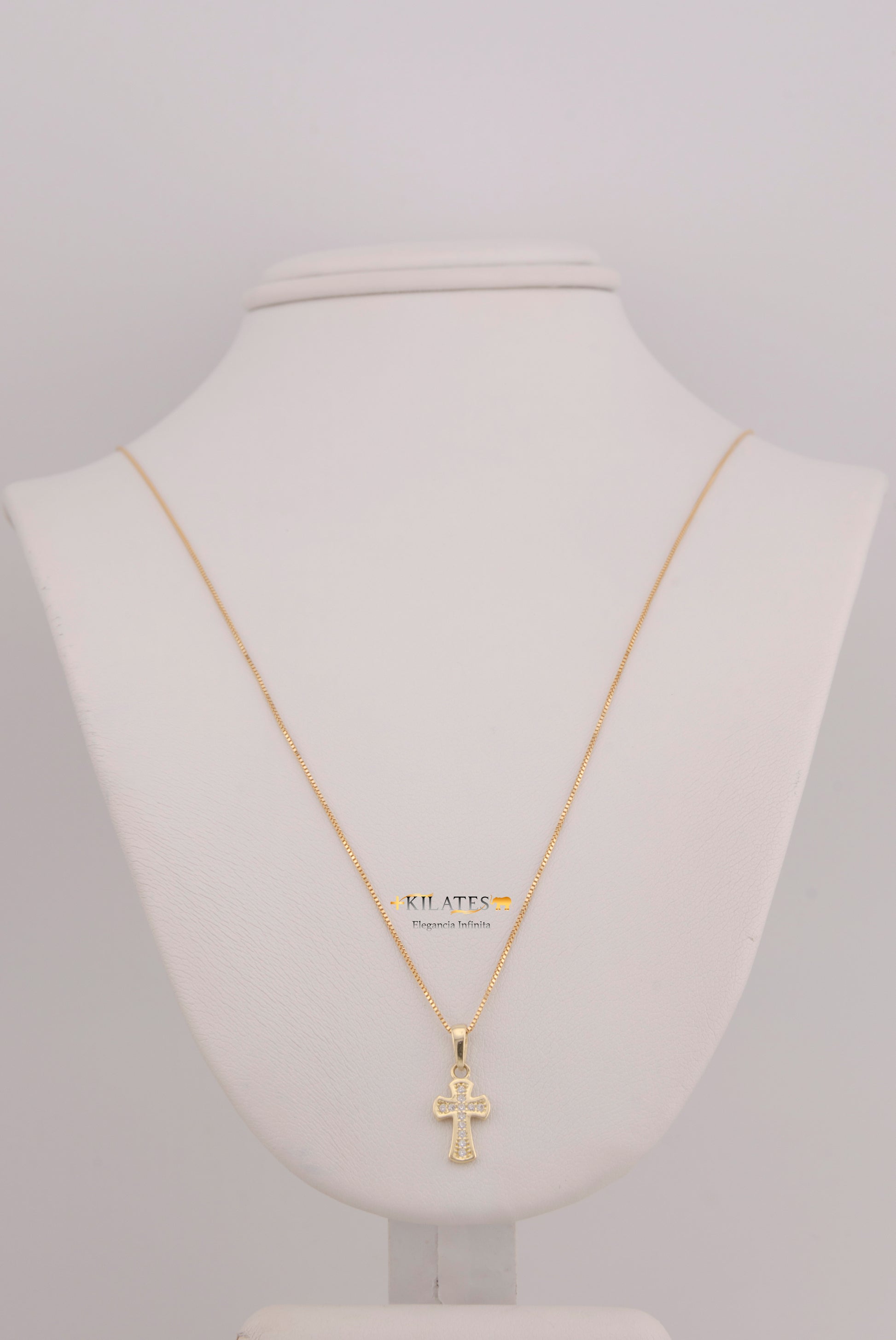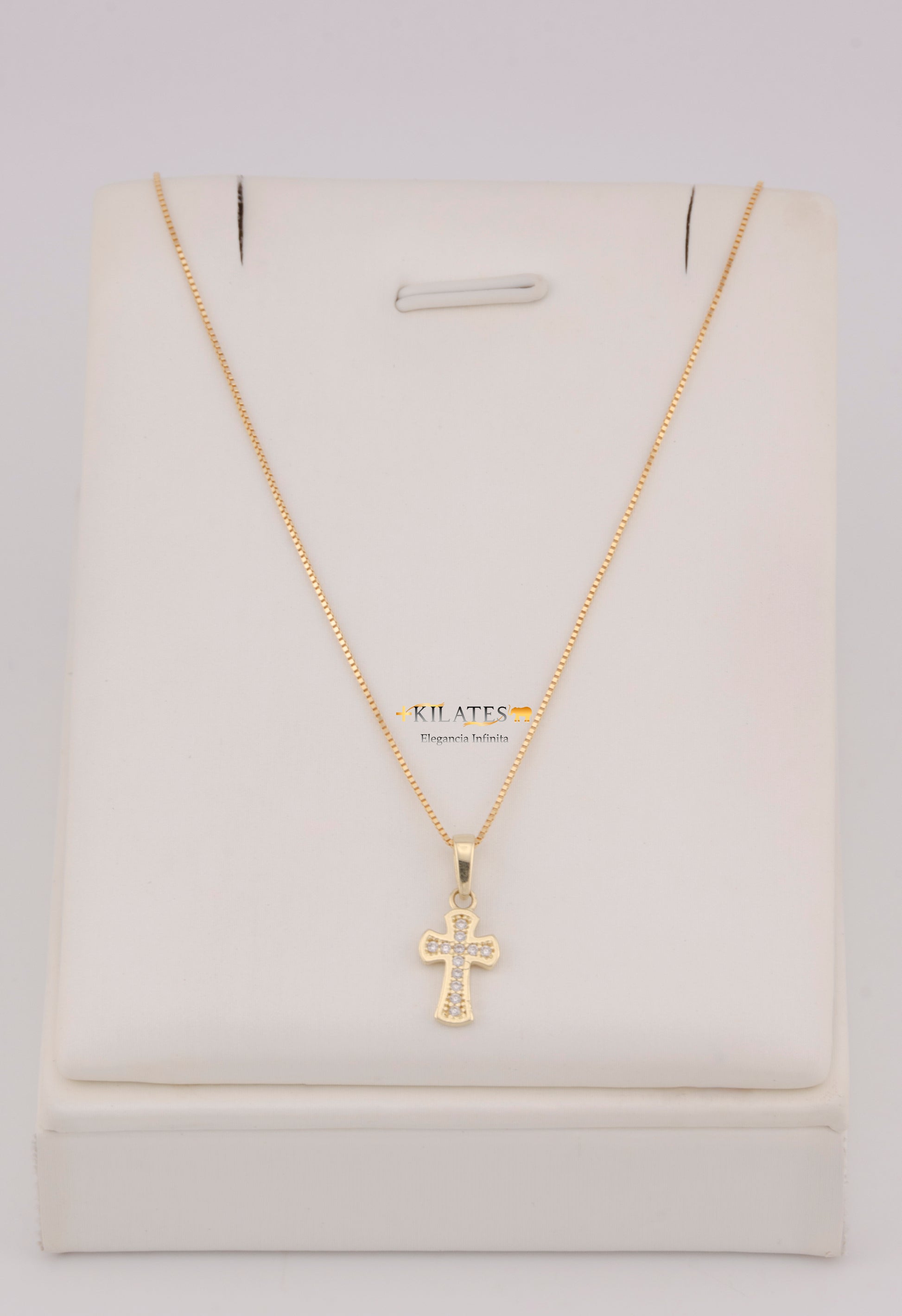 "CADENA DE 50CM PARA DAMA ESTILO FINITA CON DIJE DE CRUZ CON ZIRCONIA BLANCA. ORO 10K #775-3847"