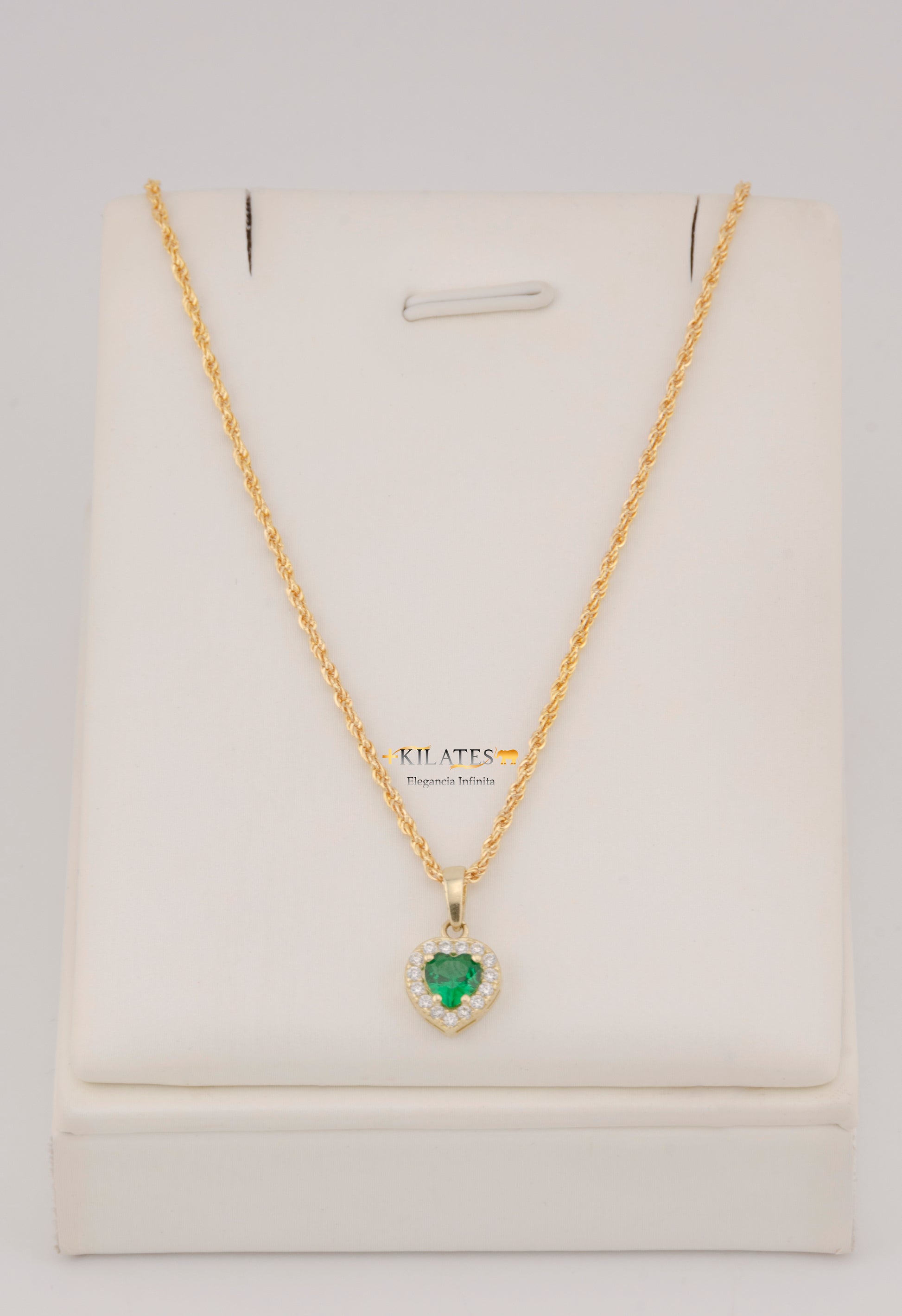 "CADENA DE 50CM PARA DAMA ESTILO LAZO CON DIJE DE CORAZON BLANCO CON VERDE. ORO 10K #775-3828"