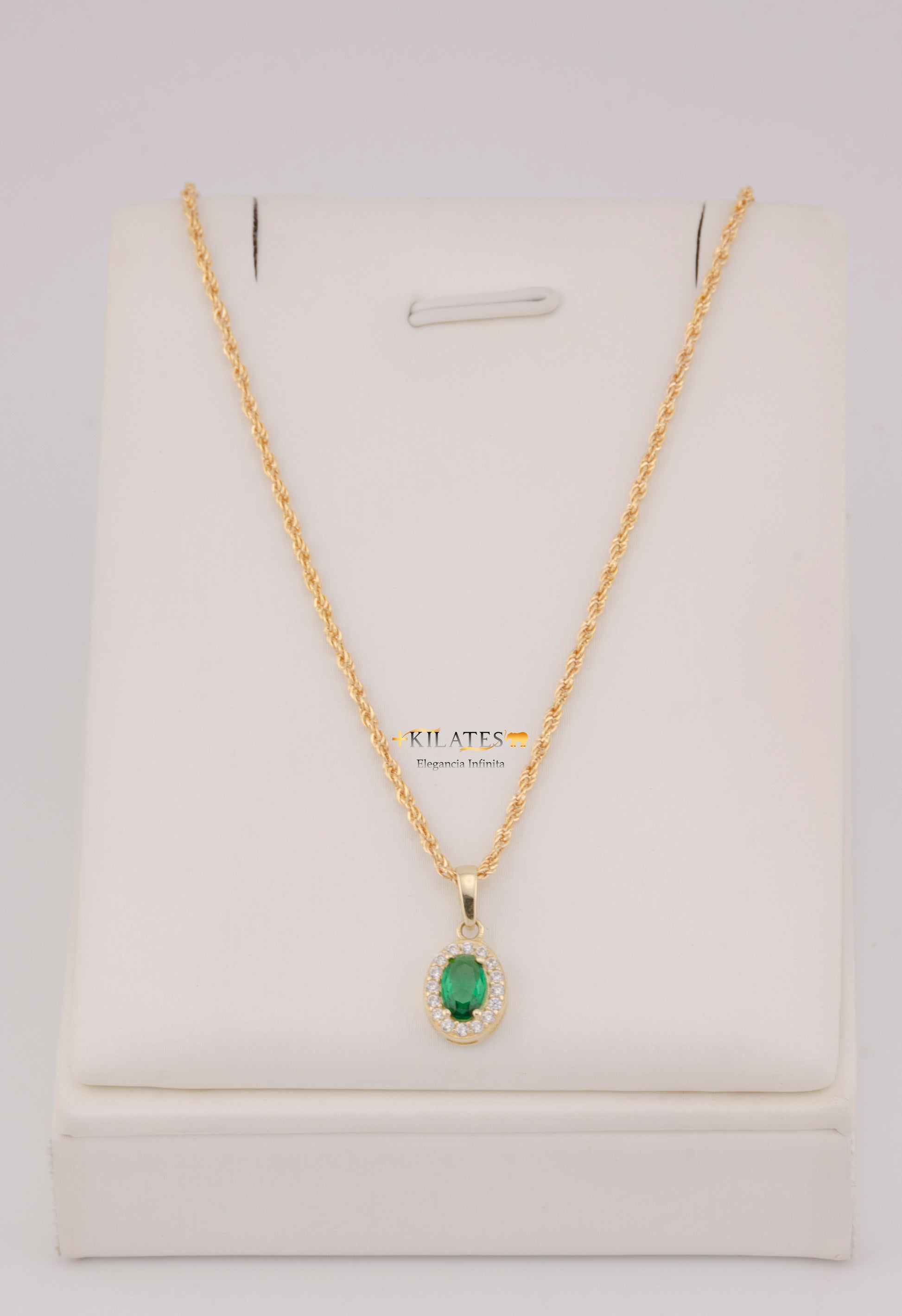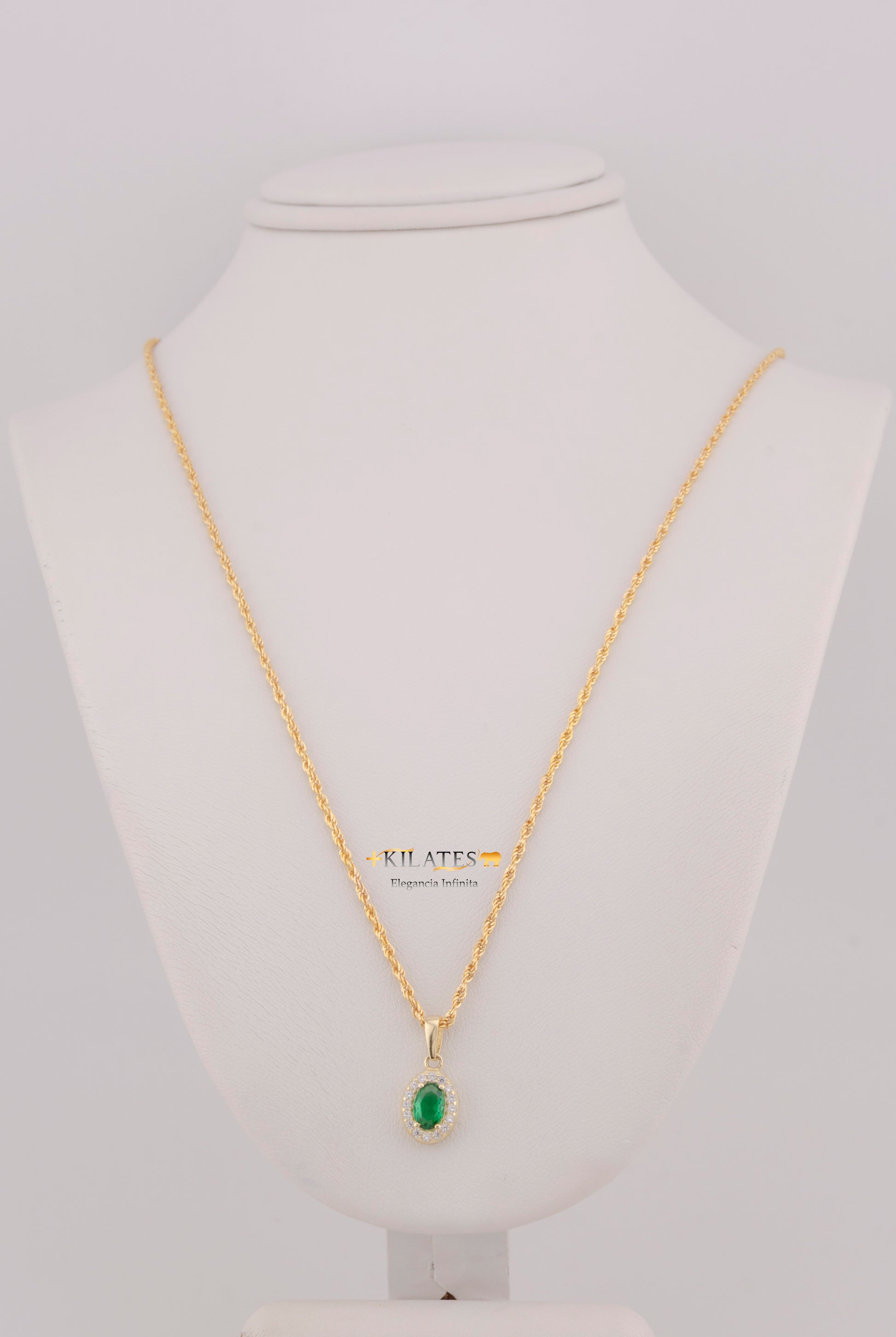 "CADENA DE 50CM PARA DAMA ESTILO LAZO CON DIJE OVALADO BLANCO CON VERDE. ORO 10K #775-3843"